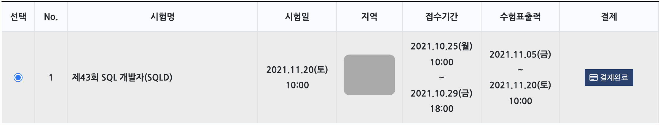 고민해보다 그래도 나 정도면 어떻게든 시험 볼 수 있지 않을까 하는 마음에 21년 SQLD 마지막 시험을 접수하게 된다.